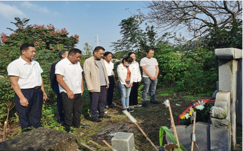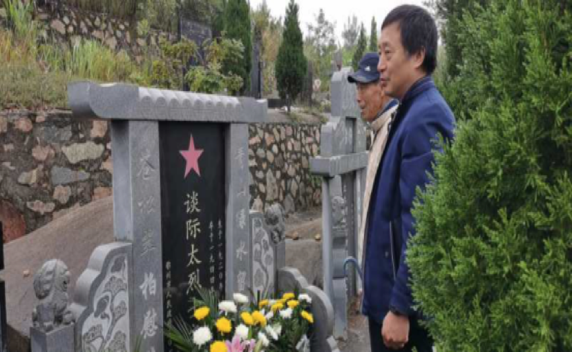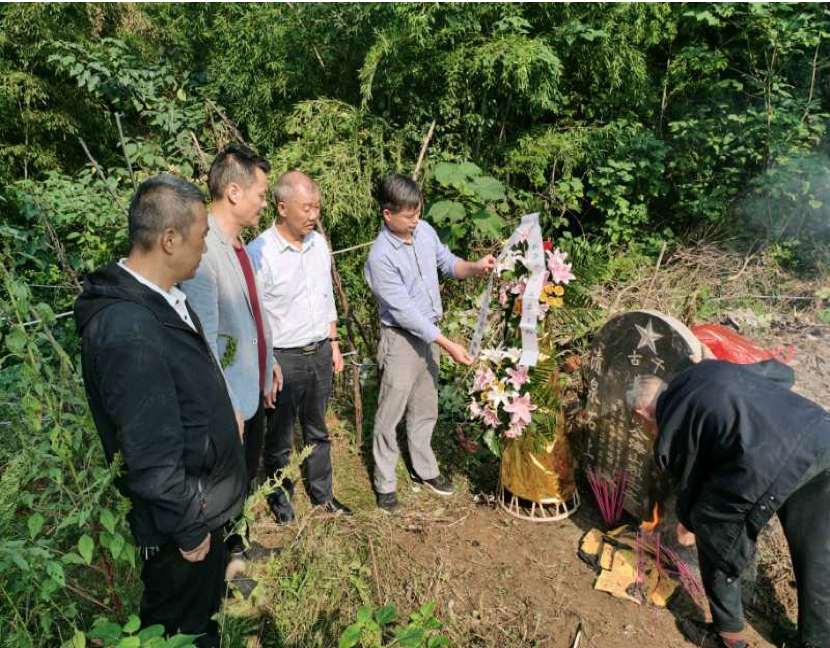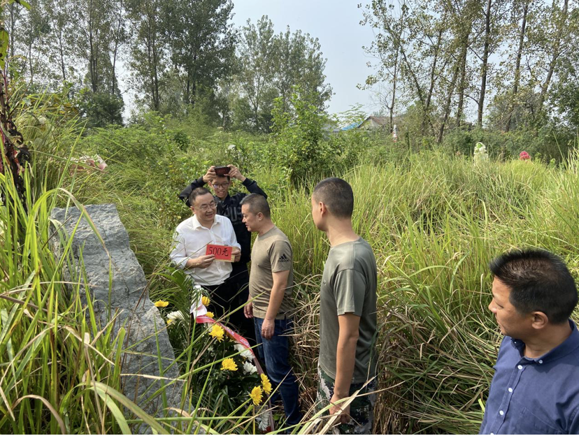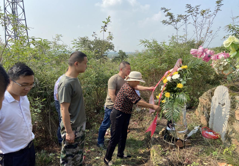 凤凰街办莲花经联社派代表前往沙窝乡长山生态林园公墓祭奠为人民解放战争而牺牲的革命烈士谈际太同志。