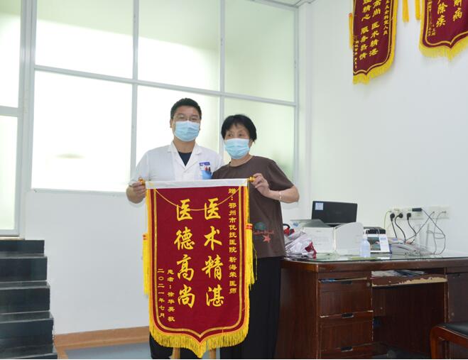 近日,患者徐婆婆将印有“医术精湛、医德高尚”的锦旗送到了市优抚医院皮肤科靳海荣医师手中,感谢靳医生帮助她摆脱长久以来的病痛折磨,并对靳医师的精湛技术和贴心服务表示了高度的肯定和由衷的感谢。