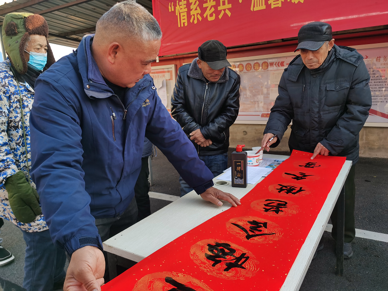 看着红色的纸上一个个大字跃然而出,力透纸背,气势磅礴,退役军人高杏和连连称赞:“这些春联写得真好,回去我就贴起来!