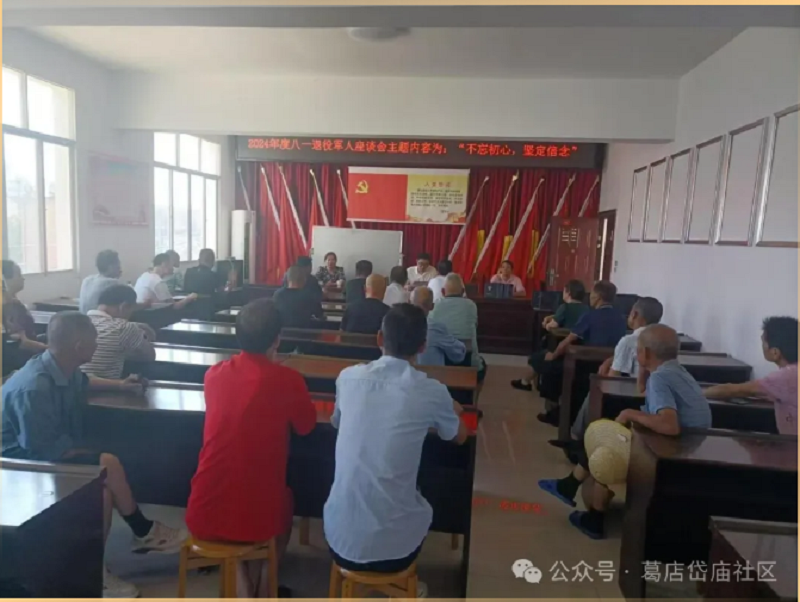 7月30日,葛店经开区岱庙社区退役军人服务站组织辖区党员、退役军人、军属开展“不忘初心、牢记使命”建军节主题座谈会。社区工作人员为退役军人送上八一纪念品,并与大家亲切交流,详细询问他们的生活状况。通过这次活动,社区“面对面、零距离”与退役军人交流,听民声、访民情、送温暖,进一步拉近了党员干部与群众之间的距离,加深了军民之间的鱼水之情,真正让退伍军人及其家庭感受到了党和政府的关怀,感受到了社区大家庭的温暖。