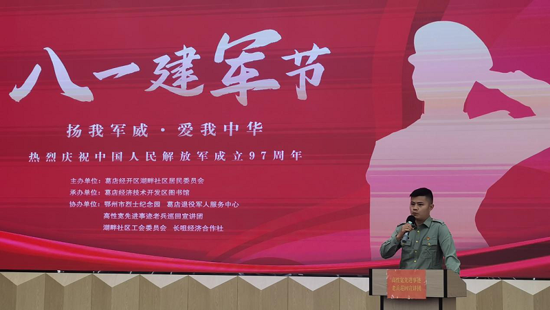 葛店经开区湖畔社区与市烈士纪念园、葛店退役军人服务中心及高性宽先进事迹老兵巡回宣讲团,共同举办了一场以“扬我军威·爱我中华”为主题的高性宽先进事迹宣讲活动。市烈士纪念园发挥自身优势,合理利用现有资源,持续开展爱国主义教育活动,创新活动形式,传承红色基因,讲好红色故事,营造浓厚的拥军优属氛围和爱国主义情怀。