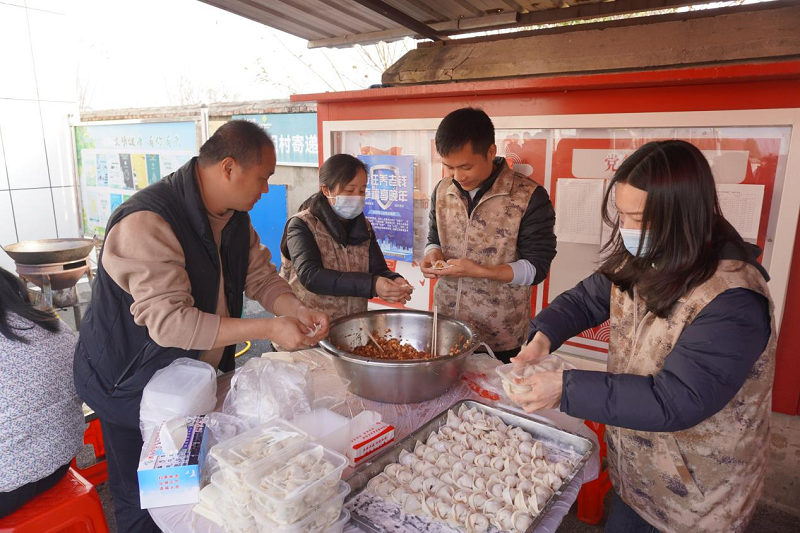 随后,志愿者与老兵们围坐一起,动手包起象征团圆的饺子。大家一边忙碌一边交谈,老兵们动情讲述往昔经历,年轻一代认真聆听,红色精神在对话中默默传承。随着饺子下锅,服务站里洋溢着家一般的温暖氛围。