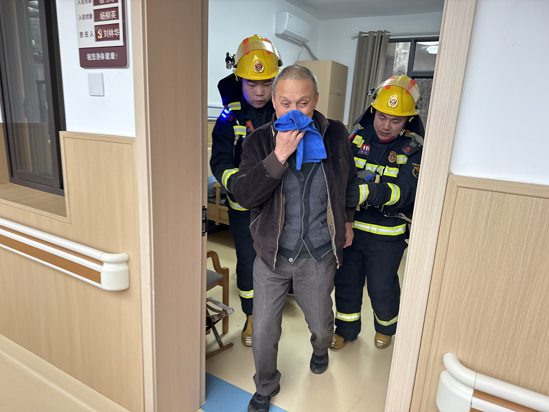 在逃生演练环节,随着模拟火情警报响起,工作人员迅速按照预案,搀扶行动不便的老人,用湿毛巾捂住口鼻,弯腰低姿有序撤离至安全区域,整个过程紧张有序、衔接顺畅,有效检验了应急疏散预案的可行性和全员协同处置能力。
