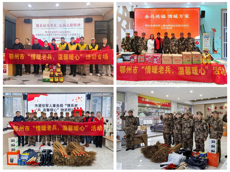 鄂城区退役军人事务局组建慰问小组分赴各镇街、社区(村),重点走访功臣模范、困难退役军人、老党员老兵、烈军属等群体。工作人员与老兵促膝交谈,详细了解身体状况、家庭生活及就业就医等情况,现场宣讲优待抚恤、就业创业等政策,送上慰问金、慰问品及新春春联、福字礼包。
